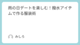 雨だからといって憂鬱になるのではなく、仲間と楽しむチャンスに変えるのがポイントです。傘を差しながらのフォトタイムや、ユニークなレインウェアコーデ対決など、小雨を活かしたイベントを企画するのもおすすめです。笑いが生まれると、雨も思い出のスパイスになりますよ。