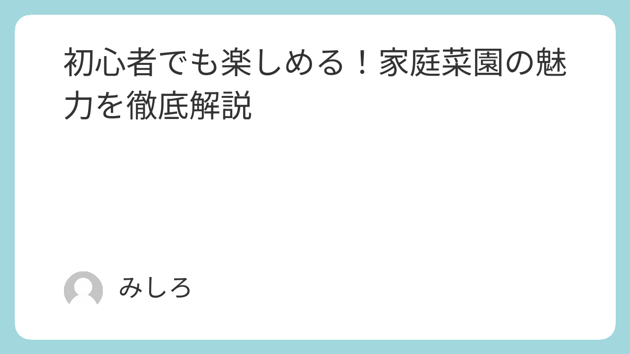 この記事は、これから家庭菜園を始めたい初心者の方に向けて書かれています。