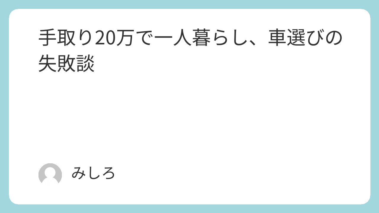 この記事は、一人暮らしをしている方やこれから一人暮らしを考えている方に向けて、車選びに関する失敗談や後悔を共有するものです。