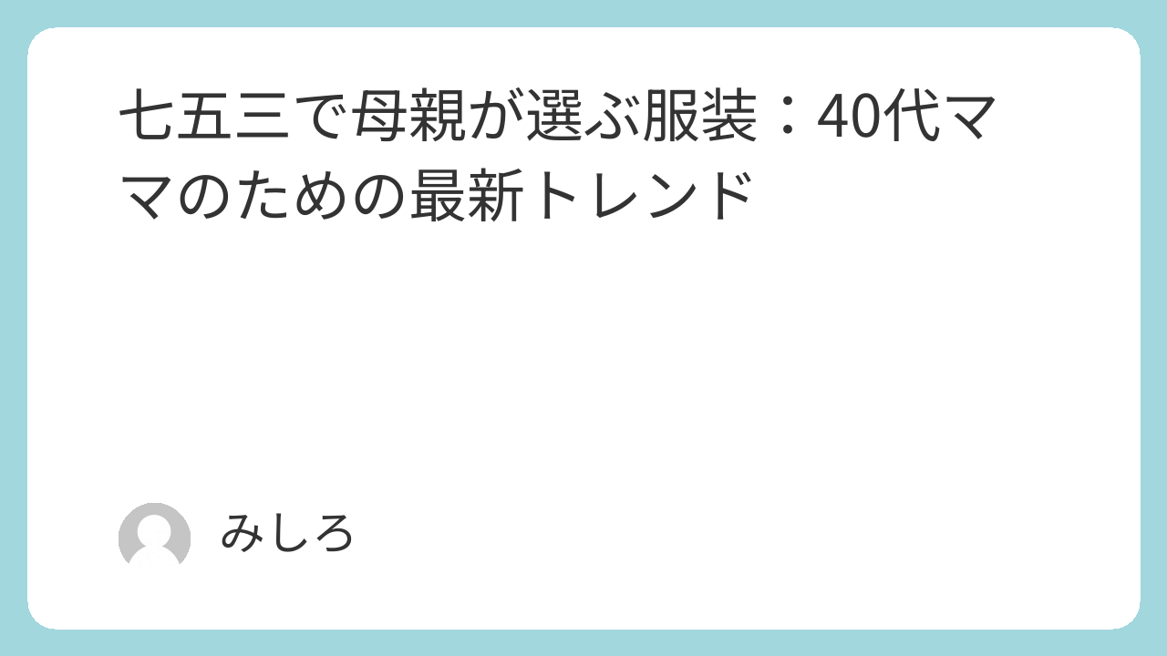 この記事は、2025年の七五三における母親の服装選びに悩む40代ママのために、最新のトレンドやマナー、コーディネートのアイデアを紹介します。