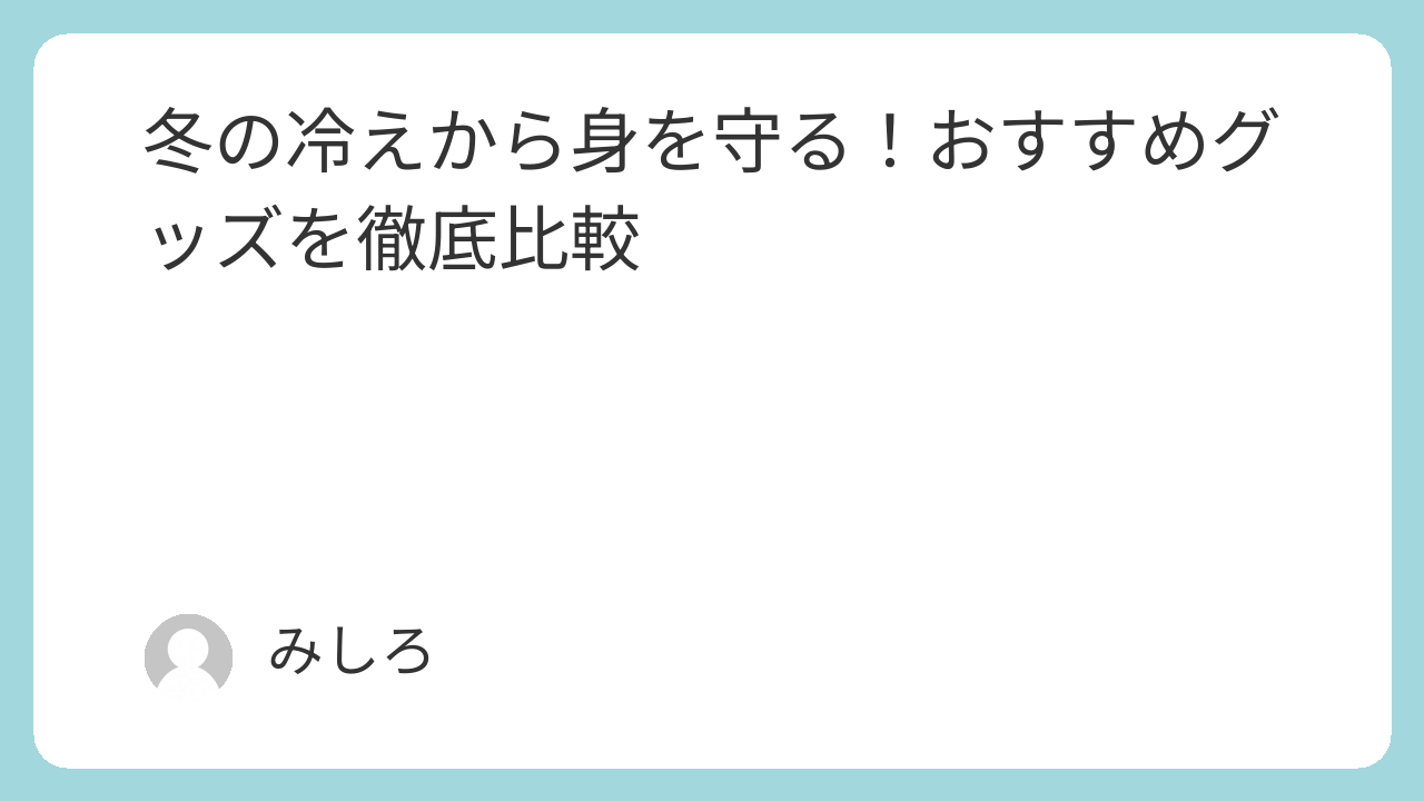 この記事で紹介したアイテムを参考に、自分に合った防寒グッズを見つけて、快適な冬を過ごしましょう。