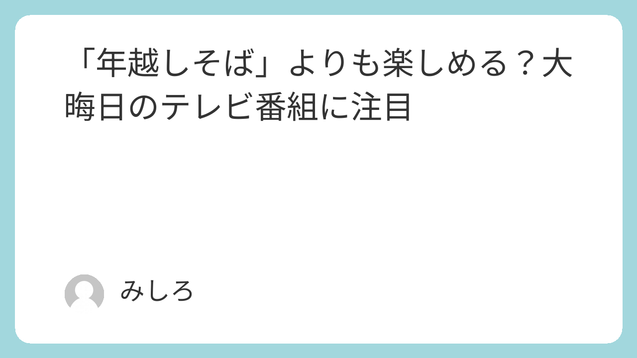 ぜひ、この記事を参考にして、大晦日のテレビ鑑賞を楽しんでください。
