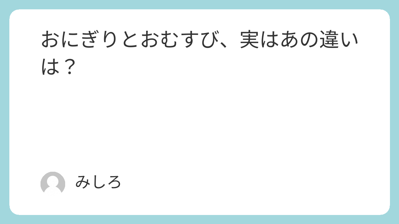 「おにぎり」と「おむすび」。「え、同じじゃないの?」と思わず声にしたくなるこの二つのことば。実はどちらも気軽に使っているけど、背景や歴史をひもとくと、思わず「へー」となる違いも。
