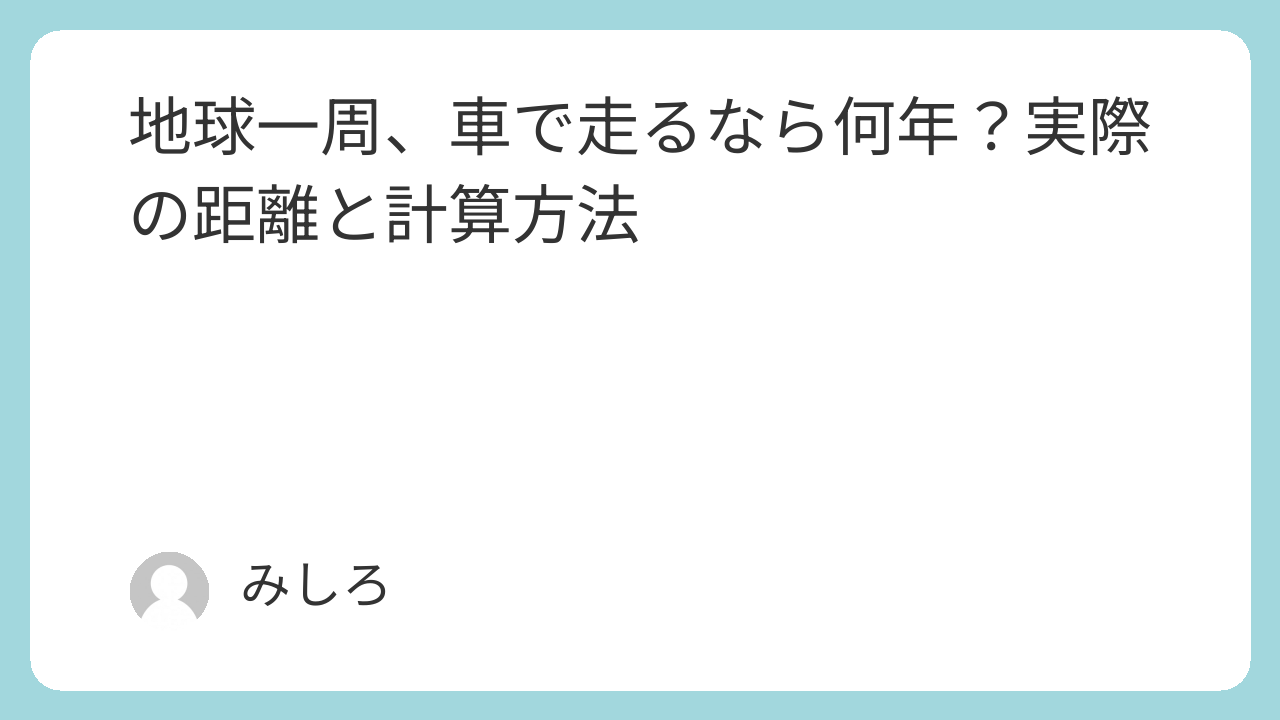 そこで本記事では、「地球一周」のリアルな距離や、平均速度をもとに計算した場合、実際には何日で走れるのか、あるいは何年なのか?
