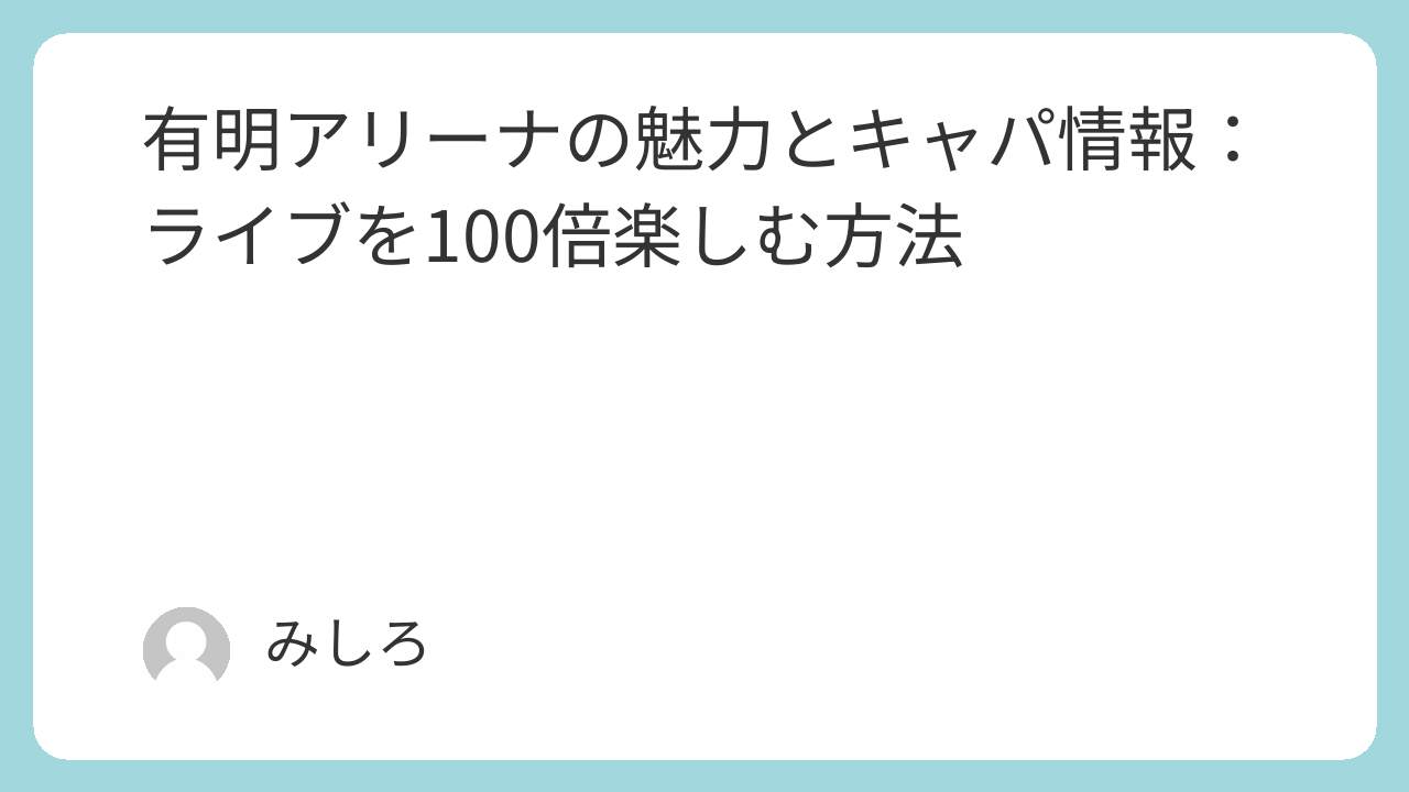 この記事では、有明アリーナのキャパ情報からおすすめの座席エリア、快適なアクセス方法やライブ当日の楽しみ方まで、ファン目線で徹底解説。