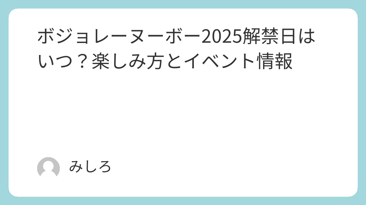 この記事は、ボジョレーヌーボー2025の解禁日や楽しみ方、イベント情報について詳しく解説します。
