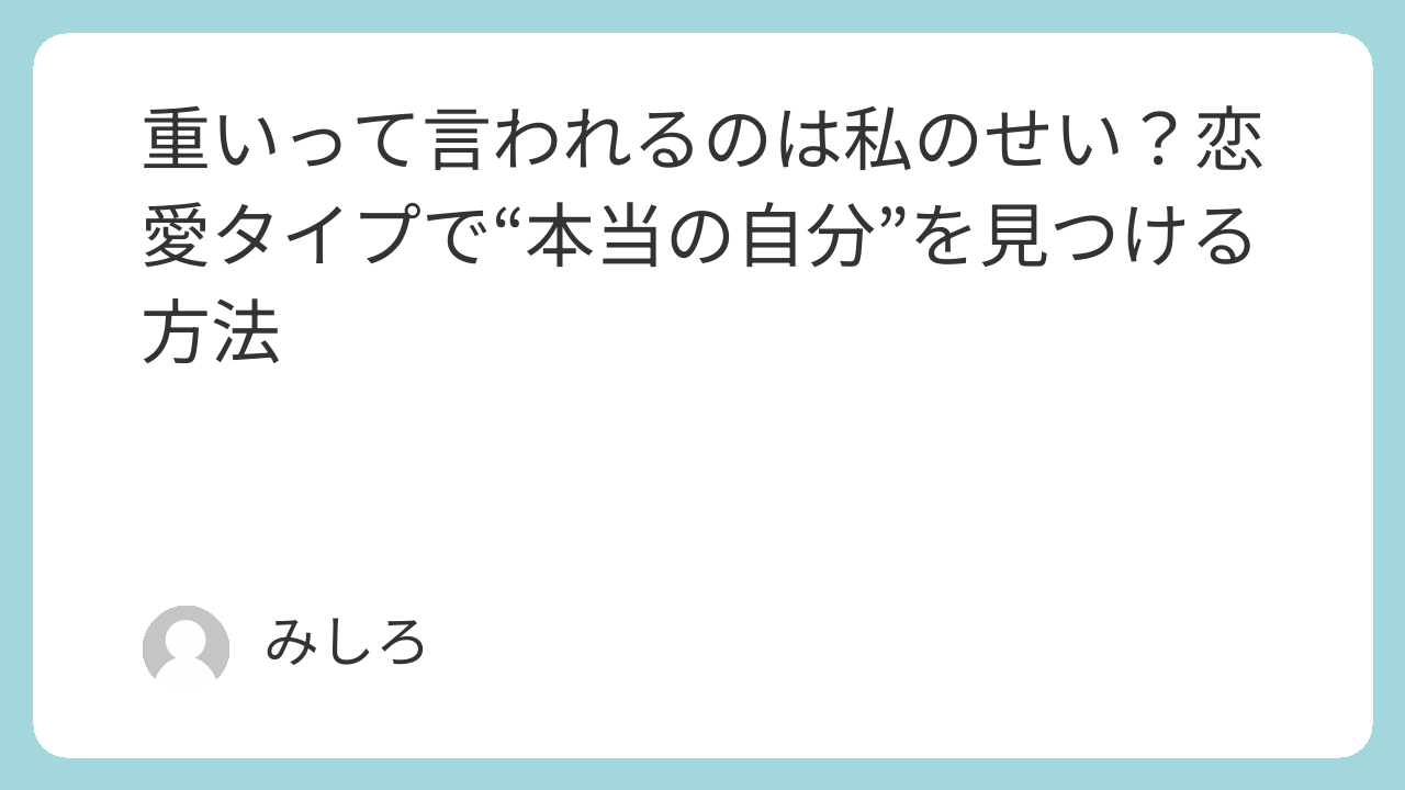 重いって言われるのは私のせい?恋愛タイプで“本当の自分”を見つける方法
