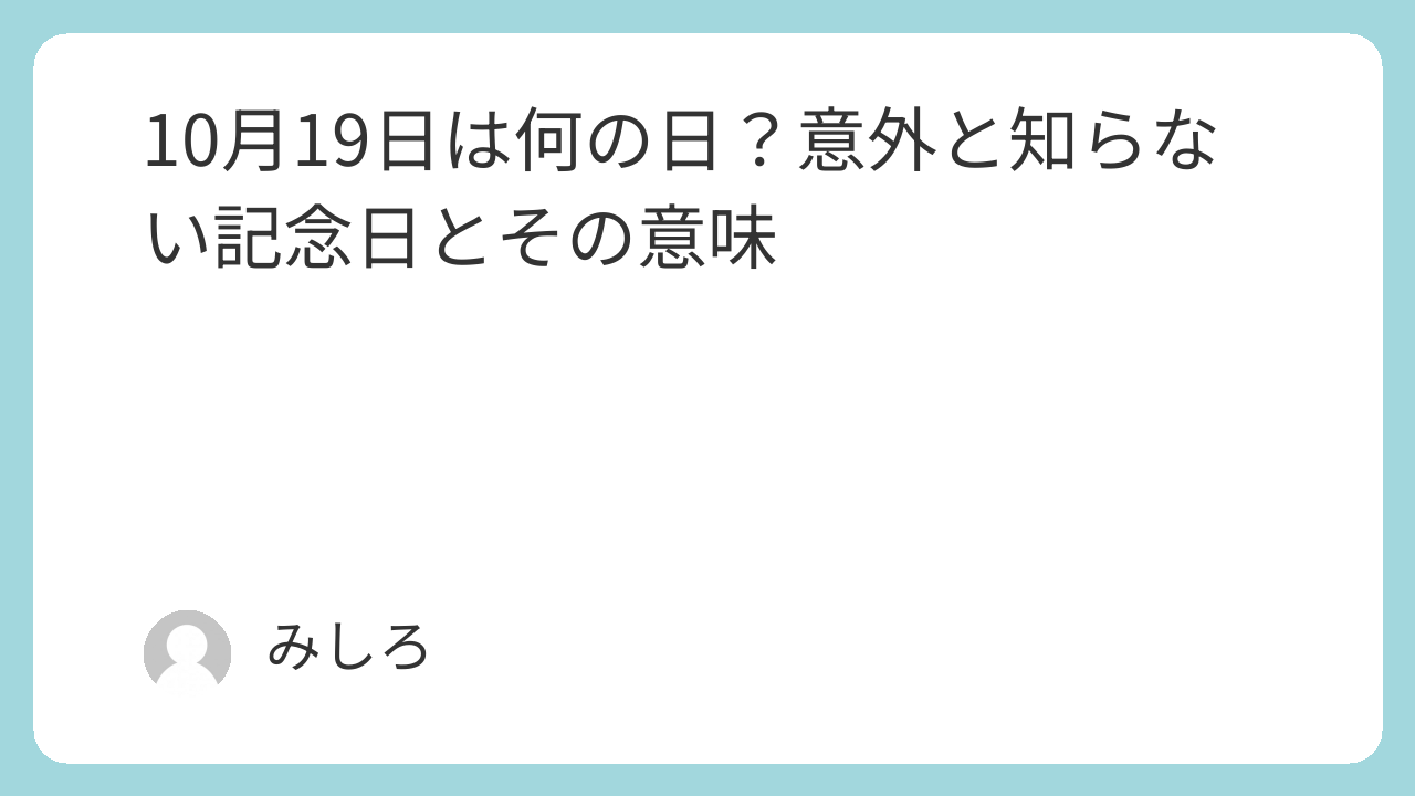 10月19日は、消費・旅行・子育てといった私たちの暮らしに関わる記念日がそろっており、社会の変化や価値観の転換を感じさせてくれます。