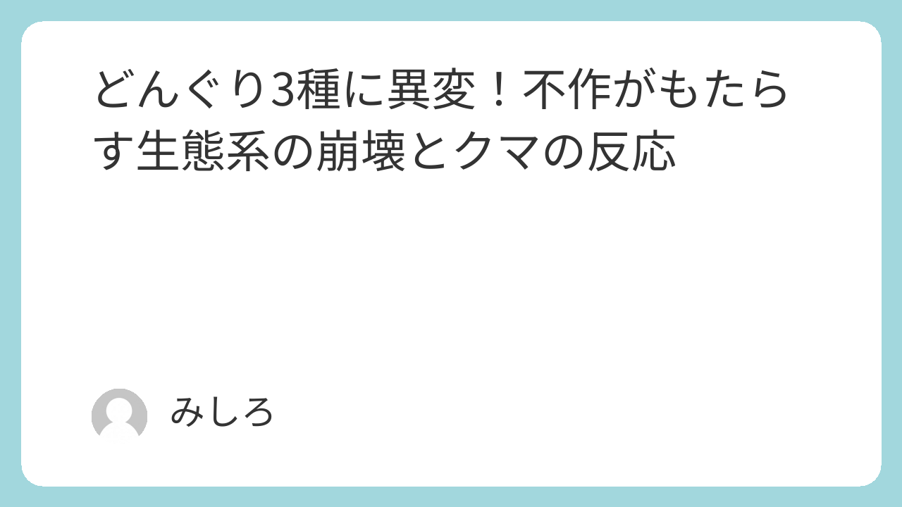 この記事は、どんぐりの不作やその種類、そしてクマの生態や被害に関心のある一般の方や、自然環境・生態系に興味を持つ方々に向けて書かれています。