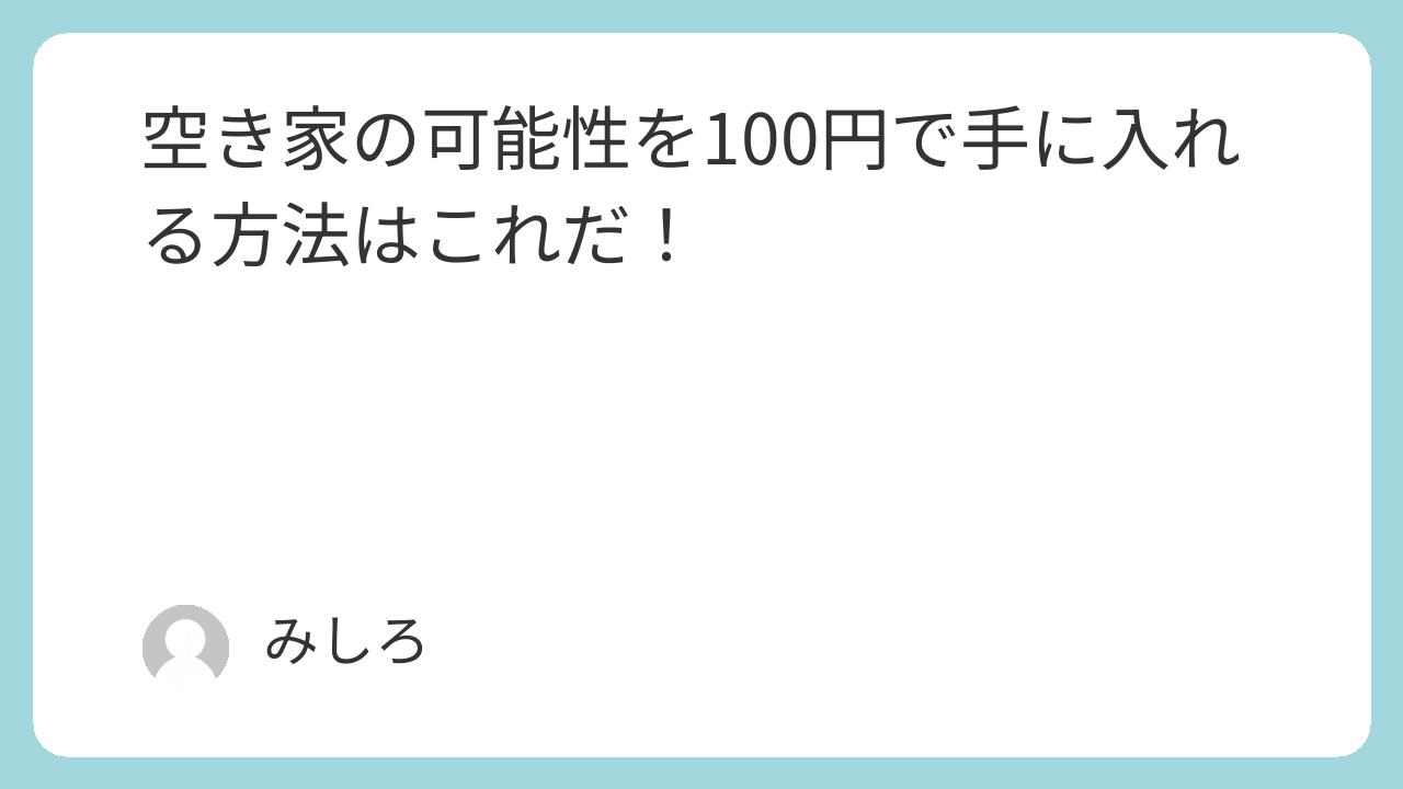 この記事は、空き家を100円で手に入れる方法に興味がある方々に向けて書かれています。