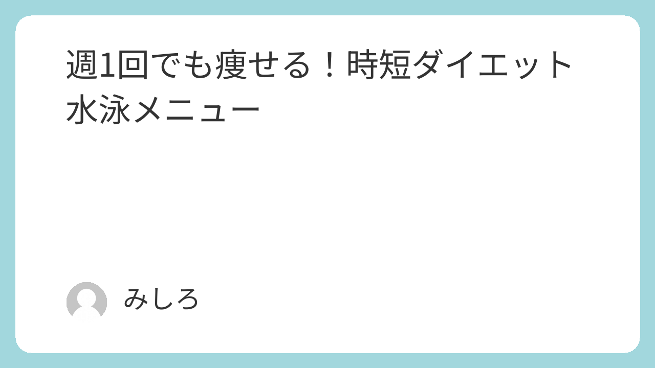 時短ダイエット水泳メニュー:週1で効率的に脂肪燃焼する具体案
