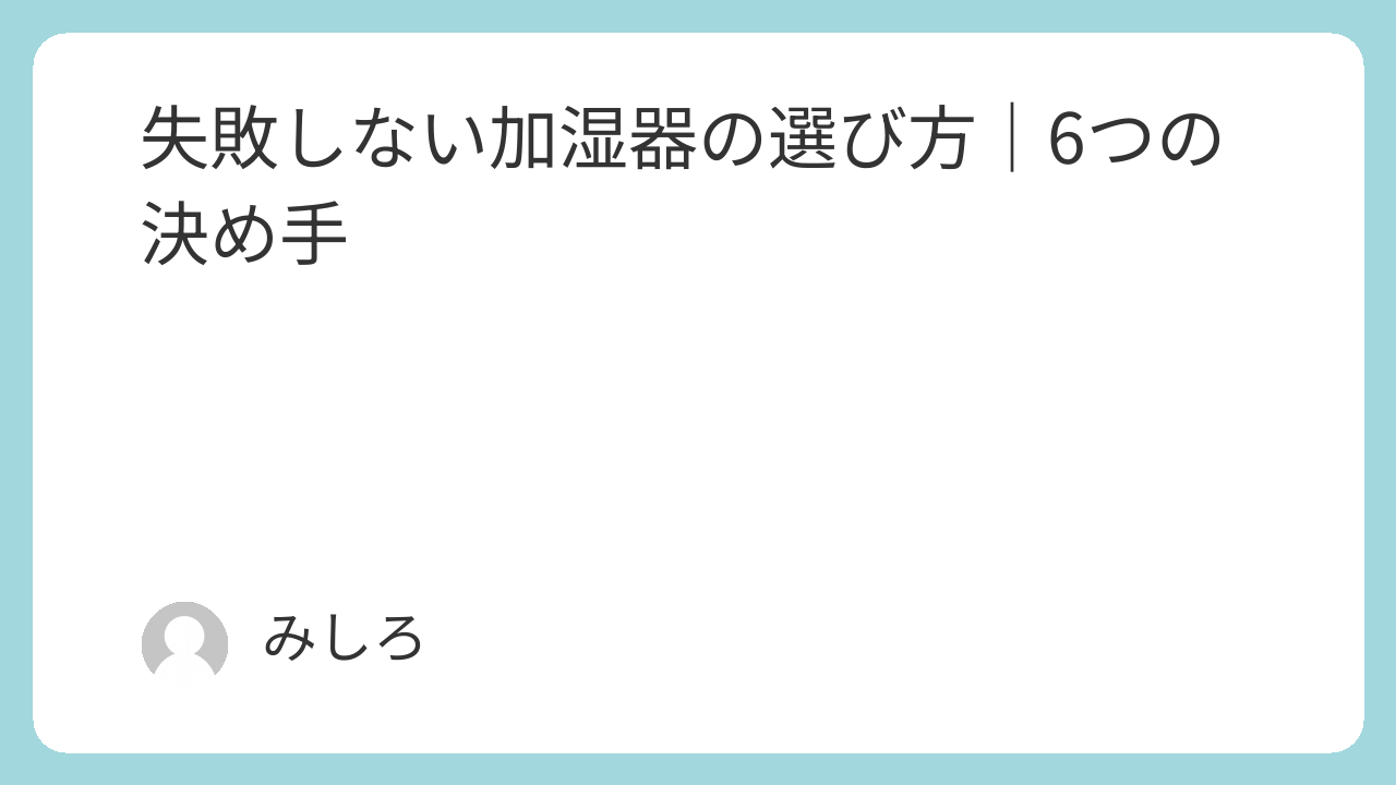 この記事では、加湿器選びでよくある失敗を避けるために必要な6つの決め手を紹介します。