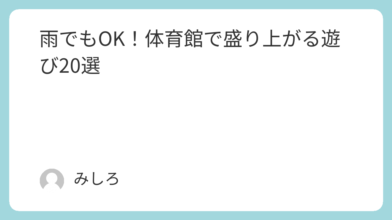 この記事は、学校の先生・イベント主催者・サークルリーダー・保護者など、雨で屋外が使えないときに体育館で安全かつ短時間で盛り上がる遊びを探している人向けに書きました。