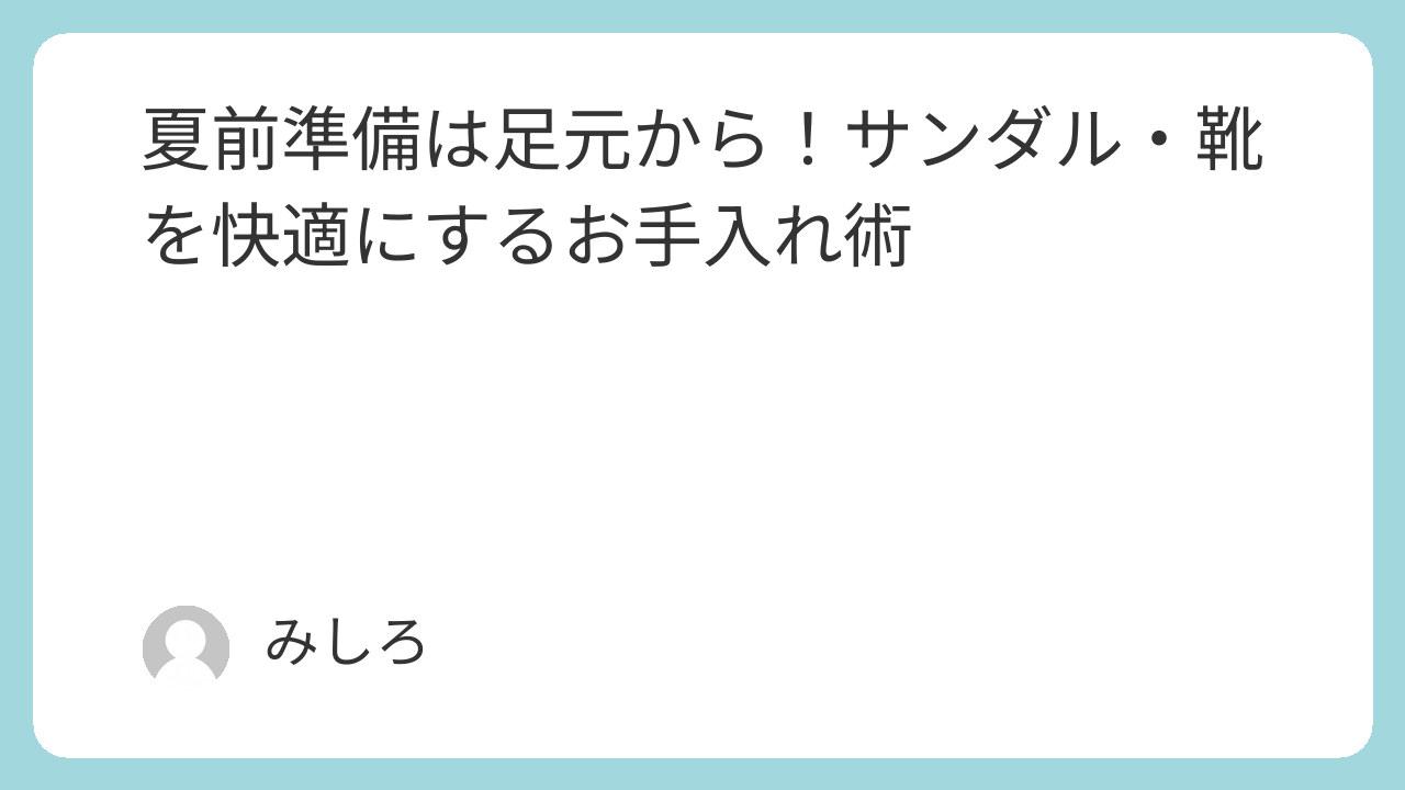 この記事は、夏前にサンダルや靴を気持ちよく履き始めたい人、去年の汚れや臭い、黒ずみ、カビが気になっている人に向けた内容です。