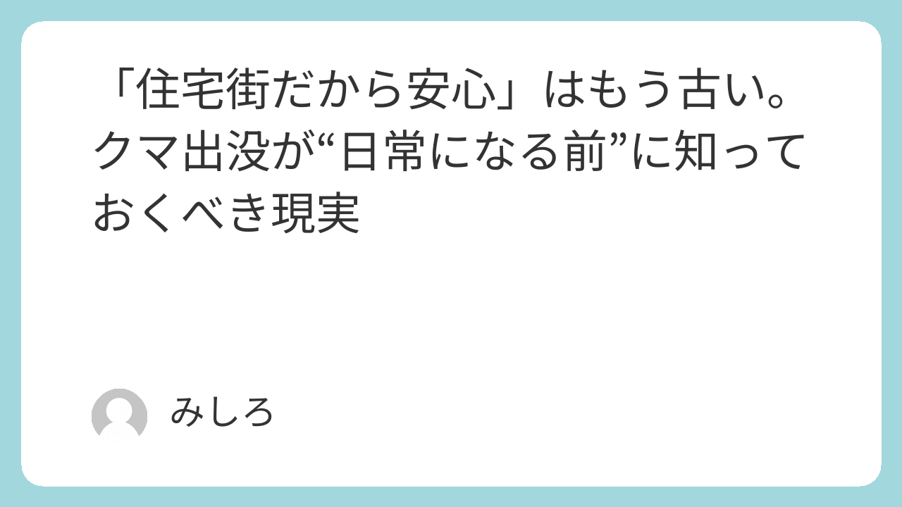 - 「うちは大丈夫」は危険信号:住宅街でもクマが出る現実