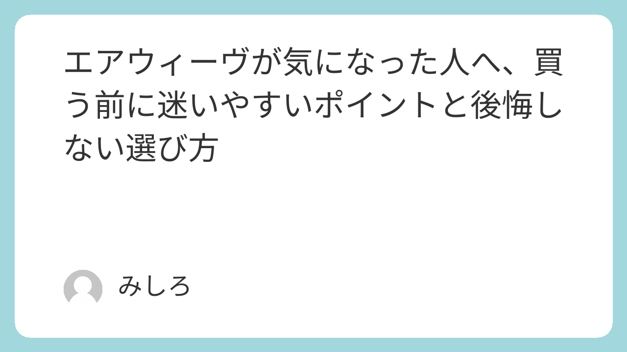 エアウィーヴの購入を検討しているけれど、広告やレビューを見て迷っている方に向けて書いています。