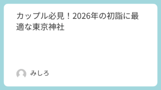 生活のアイデア 旅行中のカップル必見!2026年、初詣は東京神社!おすすめスポットを限定シェア 新年を迎えるにあたり、多くの人々が初詣に訪れる神社やお寺は、特別な意味を持つ場所です。2026年の初詣に向けて、東京でおすすめの神社を紹介します。特にカップルや家族連れにぴったりなスポットを厳選しました。この記事を参考に、素敵な初詣を計画し... 2025.10.12 生活のアイデア