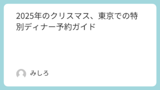 生活のアイデア 都会で彼女と極上ディナー!クリスマスデート、東京で体験できる特別ディナー予約 2025年のクリスマス、東京での特別ディナーを計画している方に向けたガイドです。この時期、東京のホテルでは多彩なクリスマスディナープランが用意されており、特別なひとときを過ごすための選択肢が豊富です。この記事では、予約のポイントやおすすめの... 2025.10.13 生活のアイデア