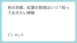 生活のアイデア 秋の京都、紅葉の見頃はいつ?知っておきたい情報 秋の京都は、紅葉が美しい季節です。この記事では、京都の紅葉の見頃や名所、撮影スポット、イベント情報などを詳しく紹介します。紅葉を楽しむための計画を立てている方や、初めて訪れる方にも役立つ情報が満載です。ぜひ、秋の京都を満喫してください。秋の... 2025.10.01 生活のアイデア