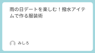 雨の日デートを楽しむ!撥水アイテムで作る服装術