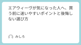 エアウィーヴの購入を検討しているけれど、広告やレビューを見て迷っている方に向けて書いています。どのモデルが自分に合うか、価格に見合う価値があるか、返品や試用のリスクはどうか、といった購入前に気になるポイントを整理して解説します。読み終わる頃...